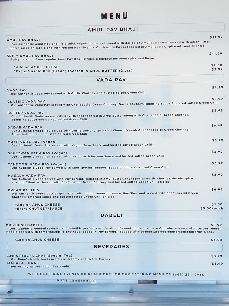 Introducing "Pav Bhaji and More", a delightful dining experience located in Sunnyvale, CA. This classy establishment offers a variety of mouthwatering options, including their famous Amul Pav Bhaji. Served with a dollop of Amul butter, this thick vegetable curry is a true delight for the taste buds. The addition of shredded cheese takes this dish to a whole new level of indulgence. Don't miss out on their Tawa Pulao, a flavorful mix of rice and vegetables sautéed with pav bhaji masala, served with refreshing raita on the side. For a unique experience, try their Dilkhush Dabeli, a Mumbai-style kutchi dabeli with a perfect blend of sweet and spicy flavors. Whether you're craving comfort food or looking to try something new, "Pav Bhaji and More" has something for everyone. Experience the deliciousness for yourself, and you won't be disappointed.